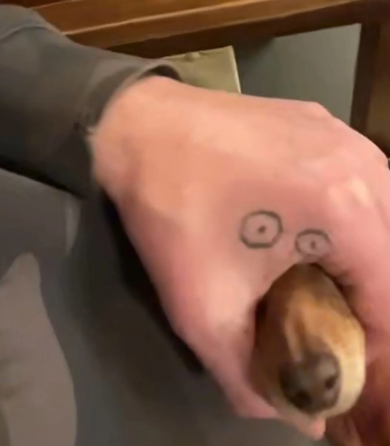 A 50-pound banknote with a painted portrait of a smiling man and a dog giving a thumbs up. The banknote features various security elements, the Royal Coat of Arms, and British symbols.